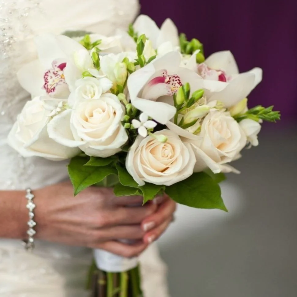 Букет невесты из белых роз и орхидей № 13